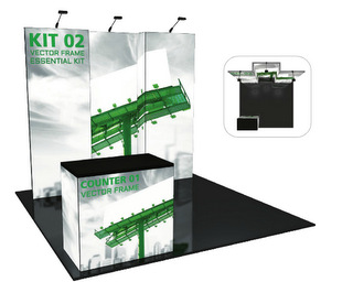 Choose the 10-foot by 10-foot display for a basic booth or go with the 10-foot by 20-foot product for large exhibit opportunities. Our business customers report that it pays to have both types of setups since occasionally it is difficult to assess what show space is available. By the way, did you know that you can mix and match the kit components for new looks every time you set up somewhere else? While your main message stays the same, the look and feel of your booth changes with your audience in mind. For even more customization, consider the shape and look of the table. A full-frame model displays your tension fabric in a larger size, but a frame counter with a pillar generates visual interest.