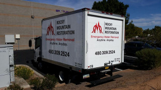 Enhancing on-street visibility of the brand was at the heart of Rocky Mountain Restoration’s decision to invest in vehicle graphics. By leaving the vehicle surfaces white, the company’s choice of a clean, simple design nevertheless catches the eye. The black lettering and red logo elements stand out. We helped the business select the ideal font and display heights for the written messages, which enhances legibility. By placing relevant brand information toward the upper third of the vehicle’s setup, we ensured that the marketing message would be clearly visible even in bumper-to-bumper traffic with cars right next to the box truck.