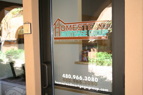 The highly successful Homestead Mortgage Group recently expanded to open an office in Gilbert. In the business of assisting clients with their mortgage needs, this company emphasizes excellent customer service and specializes in loan products that other companies may not have experience with. Examples include jumbo home loans and reverse mortgage loans. When it came time to outfit the new location with lobby and door signage, the management team contacted Spotlight Signs and Imaging Solutions for assistance.