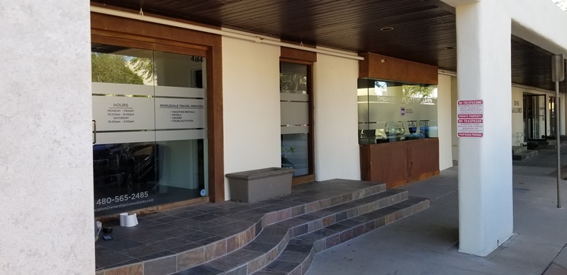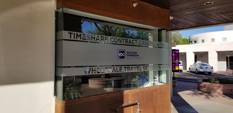 Located at 4164 North Marshall Way, Vacation Ownership Consultants has made it a mission to help people cancel their timeshare contracts. With a 100-percent success rate, it is a much sought-after venue. To make wayfinding a little easier, the company’s management team connected with Spotlight Signs and Imaging Solutions to discuss the display of etched vinyl window graphics in Scottsdale, AZ.