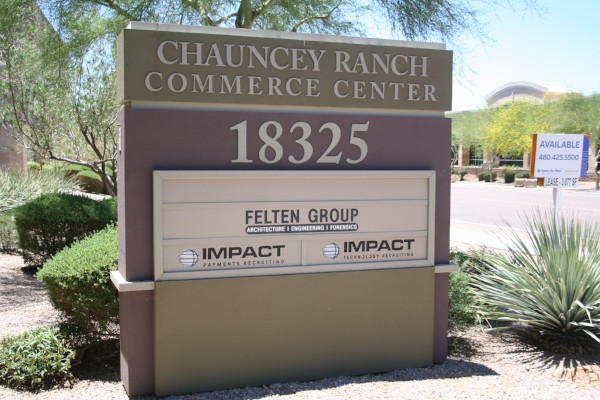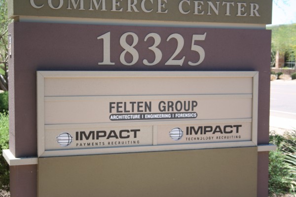 You find the Felton Group at 18325 North Allied Way in Suite 200. In the business of residential structural engineering, these experts also offer assistance with niche-specific forensics. In the past, our professionals assisted the firm with a variety of interior signage applications. This time, they called us back to help with the construction of an additional building sign to mark the newly added space at the company’s Scottsdale location.
