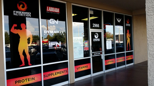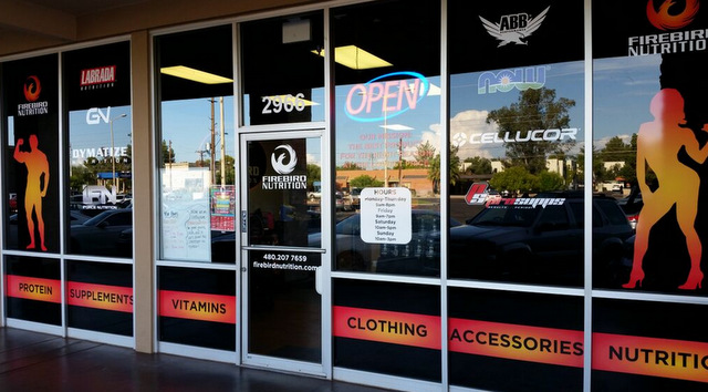 Located at 1614 North Higley Road, Firebird Nutrition specialists cater to athletes in search of fitness and health supplements that include fat burners, proteins and vitamins. When it came time to bring more attention to the company’s location, its management team contacted the graphic artists at Spotlight Signs and Imaging Solutions to design, manufacture and install window graphics in Gilbert, AZ.