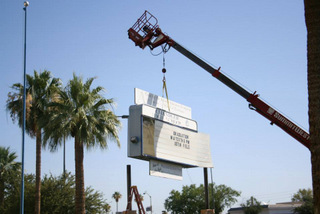 Contacting Spotlight Signs and Imaging Solutions to do the work, we took down the old sign on Monday. Since we know that this is quite a bit of change for the proud Wolves and everyone associated with Chandler High, we thought it would be fun if all of you could follow along the process that will culminate in the installation of one of the new changeable letter board signs for schools in Chandler, AZ.