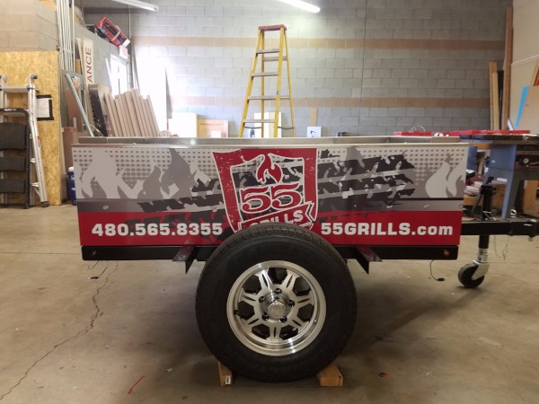 55 Grills is the answer to your tailgating quandary. These friendly folks hook you up with quality stainless steel towable grills that come in a number of sizes and designs. Located at 1309 North Leland Court, this business makes it possible for mobile catering outfits, businesses hosting special events, and private parties who want to cook for the family reunion at the lake to do just that. But while these folks put together the rugged construction, they contacted us for help with grill wraps in Gilbert, AZ.