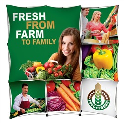 Backdrops. When you do not have a full booth setup, use this wallbox as your background display. It is large enough to cover the amount of ground that you have to work with. Moreover, when you choose the graphic with the colors of your other displays in mind, it can help to tie together the entire presentation.