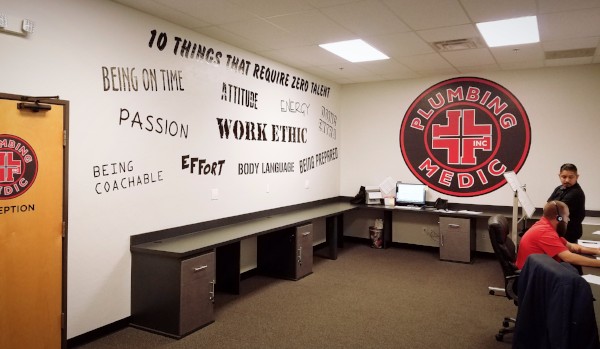We first met with Plumbing & A/C Medic to find out what they had in mind for their latest project. They basically wanted to add some motivational flair to the walls of their office. They had specific ideas in mind, and based on these ideas, we created art proofs of wall graphics. Once they approved of the designs, we went to working printing and installing them.