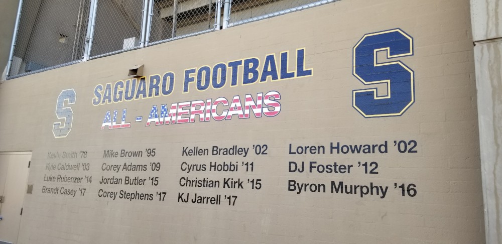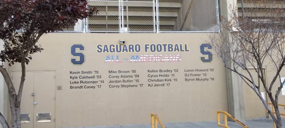 This past week, we installed a wall mural outside of the football stadium that displays a list of the 15 Saguaro football players who have been honored as All-Americans. Ten of these players have come since 2009, an incredible pace of over one player per year. To have so many players selected as All-Americans is an amazing achievement given the vast pool of talent across the country that the award draws on.