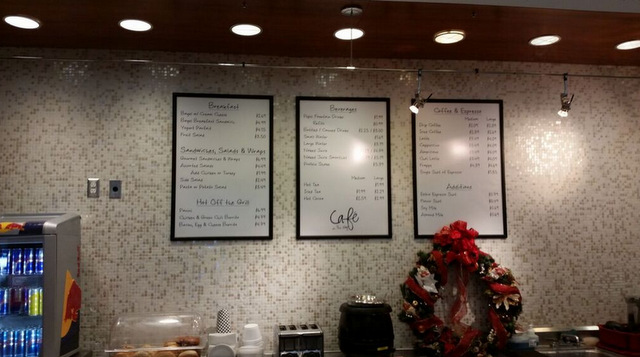 Menu boards. The old products were dated. The new ones consist of 24-inch by 36-inch snap frames that display custom-branded inserts. The management team can quickly switch out the inserts if there are additions to the menu or changes in the pricing structure.