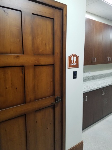 For the exterior lettering, the letters were cut from PVC using a font that projected tradition and professionalism without being flashy. The interior signs were going for a similar aesthetic. The restroom doors were made of wood so we added a wood grain look to the signs to match the décor. Once the markers were ready, we scheduled a time to install them when we would not get in the way of church functions. In the end, they were happy with the job we did, and their first Mass was a huge success.