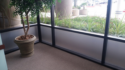 We did another etched glass vinyl job for a business called Integrated Wealth Management. Located at the Portales Center in Scottsdale, AZ, this company relocated into a new suite in the same building. With lots of glass inside the space – and leading to the outside – the business’ management team was concerned about the privacy of clients. At the same time, the team did not want to lose the incoming natural light.