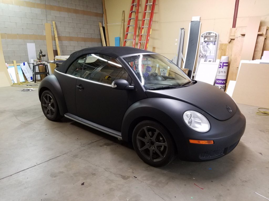 Carbon fiber and matte finishes are popular and are very easy to achieve with a vinyl wrap. It produces a look that is sleek and sporty. We have used these types of materials on wraps that we have installed and designed.